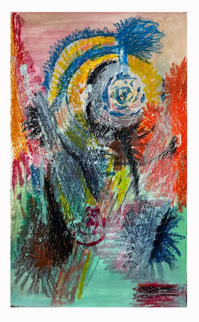 Quick and Dirty Art 2-1 (2025, drawing, oil pastel, ink, watercolot on paper, 28x40 cm)