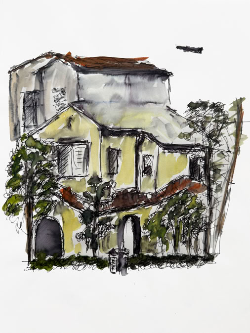 (2025, ink and watercolour on paper 21 x 29 cm)